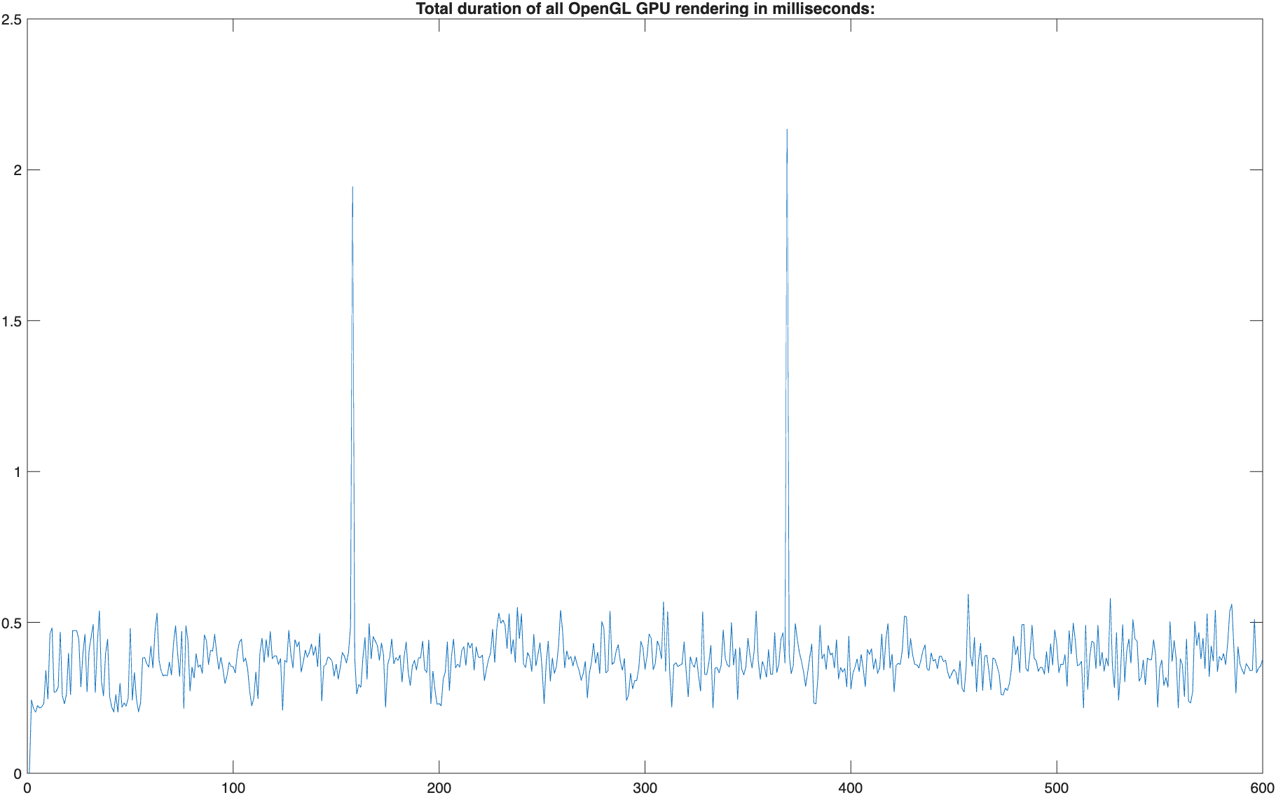 Measured refresh interval, as reported by “GetFlipInterval” is 16.66667 ms. (nsamples = 1, stddev = 0.00000 ms)